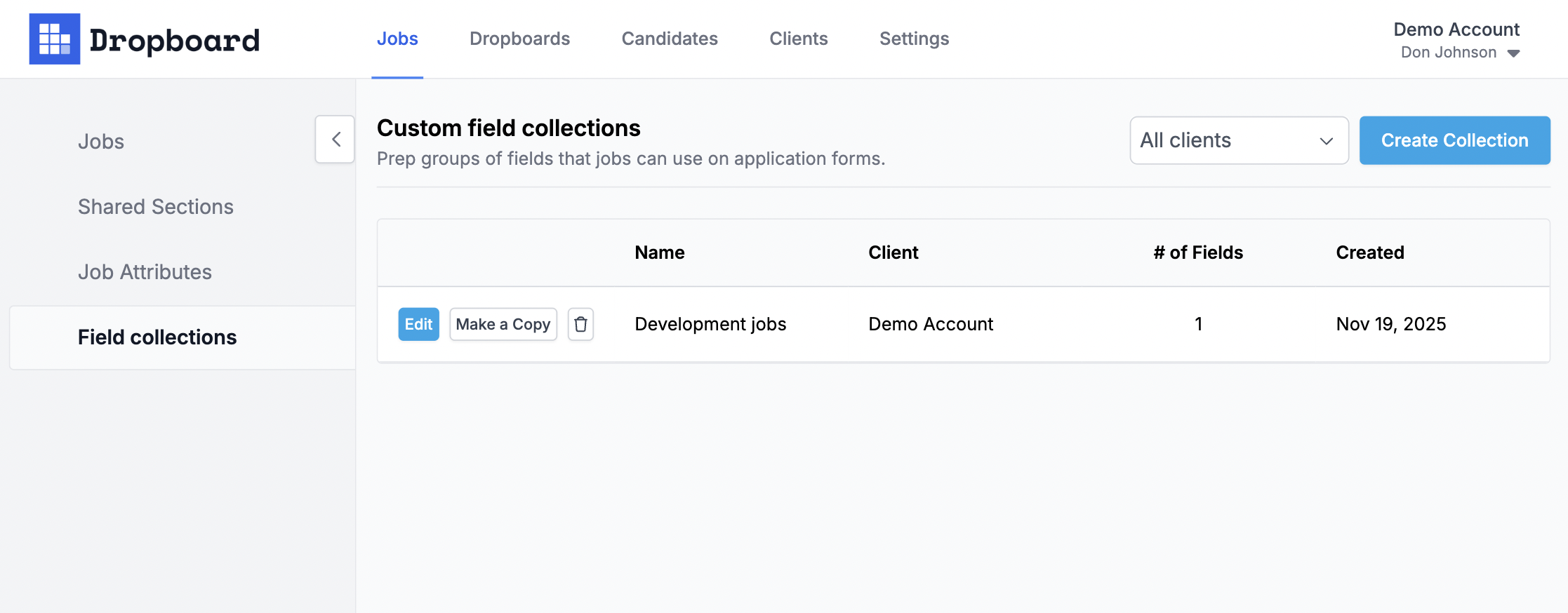 Job-specific field collections